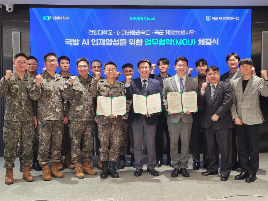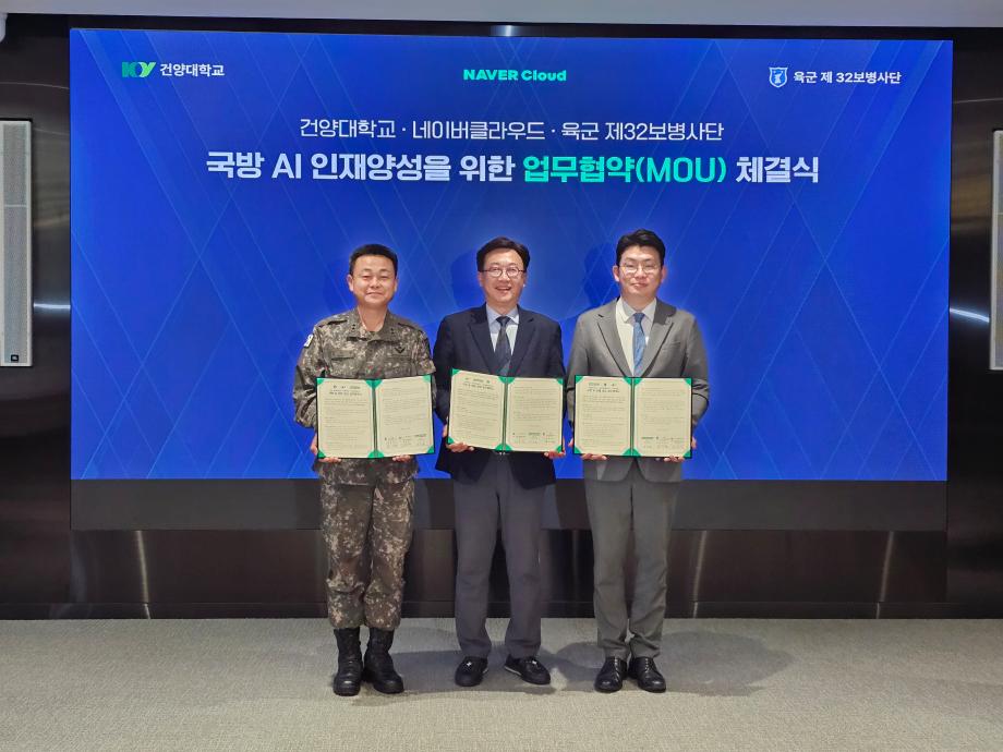| 제목 | [MOU] 건양대·네이버클라우드·육군 32사단, 국방 AI 인재 양성 ‘산학군’ 협력 시동 | ||||