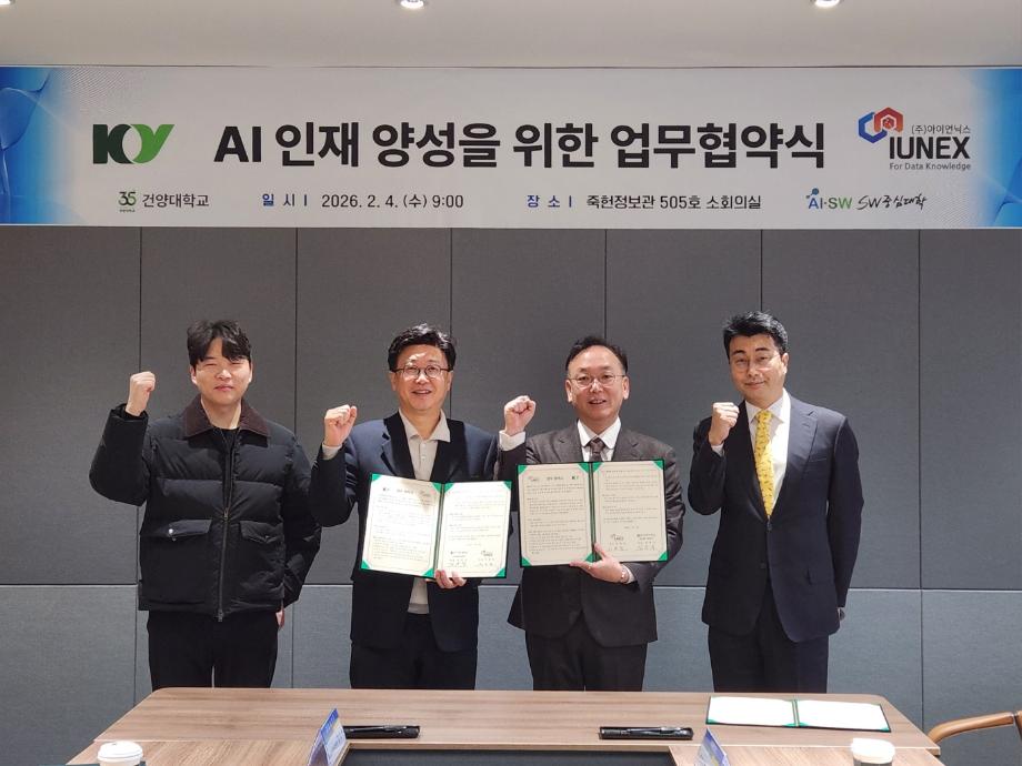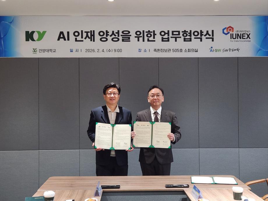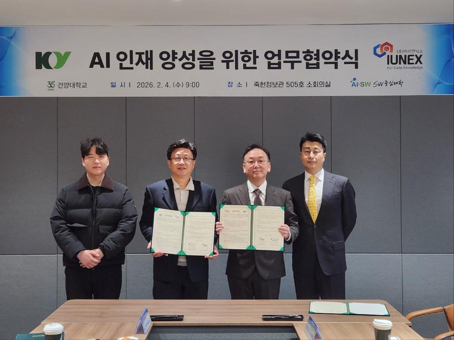 건양대학교 SW중심대학, AI중심대학 전환 위한 전략적 행보 가속화 ** 산학협약 통한 교육–연구–산업 연계 AX 체계 강화 ** 건양대학교(총장 김용하) SW중심대학사업단(단장 김용석)은 그동안 SW중심대학 사업을 기반으로 AI 교육 인프라 구축과 교육과정 혁신을 단계적으로 추진해 왔으며, 이를 토대로 의료 AI 분야를 핵심 축으로 한 AI중심대학 전환에 속도를 내고 있다. 교육·연구·산학 전반에 AI를 내재화하는 전략 아래, 현장 중심의 실무형 인재 양성과 AI 전환(AX) 생태계 조성을 위한 산학협력을 본격화하며 대학 혁신의 새로운 단계로 나아가고 있다. 이러한 AI중심대학 전환 전략의 일환으로 2월 4일 ㈜아이언닉스(대표 서일영)와 협약을 통해 의료 AI 및 소프트웨어 전문 인재 양성과 AI 전환(AX) 생태계 조성을 위한 산학협력을 강화한다고 밝혔다. 이번 협약은 대학의 교육·연구 체계를 AI 중심으로 전환하고, 산업 현장과 연계된 실무형 교육 모델을 구축하기 위한 전략적 협력이라는 점에서 의미가 크다. 특히 의료 AI 기술을 핵심 축으로 삼아 교육과 연구, 취업 연계까지 이어지는 AI 기반 인재 양성 선순환 구조를 마련하는 데 목적을 두고 있다. 양 기관은 협약을 통해 ▲의료 AI 기술을 활용한 소프트웨어 솔루션 공동 연구 개발 ▲산학 공동 교육과정 및 맞춤형 인재 양성 프로그램 운영 ▲학생 대상 현장실습 및 취업 연계 ▲교원과 기업 연구 인력의 상호 교류 ▲대학의 교육·연구 인프라와 실증 테스트베드 공동 활용 등을 추진할 계획이다. 아울러 함께 체결된 예약기업 협약을 통해 ㈜아이언닉스는 연 단위로 AI 인재 채용을 사전에 연계하고, 현장 중심의 공동 교육과정과 인턴십 프로그램을 운영함으로써 교육–실습–채용으로 이어지는 AI 인재 양성 모델을 구체화한다. 김용석 SW중심대학사업단장은 “이번 협약은 단순한 산학 교류를 넘어, AI 기술을 대학 교육과 연구 전반에 내재화하는 AI중심대학 전환 전략의 핵심 사례”라며 “의료 AI 분야를 선도하는 기업과의 협력을 통해 학생들이 실제 산업 현장에서 요구하는 AI 역량을 갖출 수 있도록 교육 혁신을 지속해 나가겠다”고 말했다. 건양대학교는 향후 의료 AI 협력을 시작으로 다양한 산업 분야와의 연계를 넓혀 AI 적용 영역을 지속적으로 확장할 예정이다. 이를 통해 산학 공동 연구와 실증 중심 교육을 강화하고, 기업 참여형 교육 모델을 고도화함으로써 지역과 산업 현장에서 요구하는 AI 인재 공급 체계를 안정적으로 구축해 나갈 계획이다.